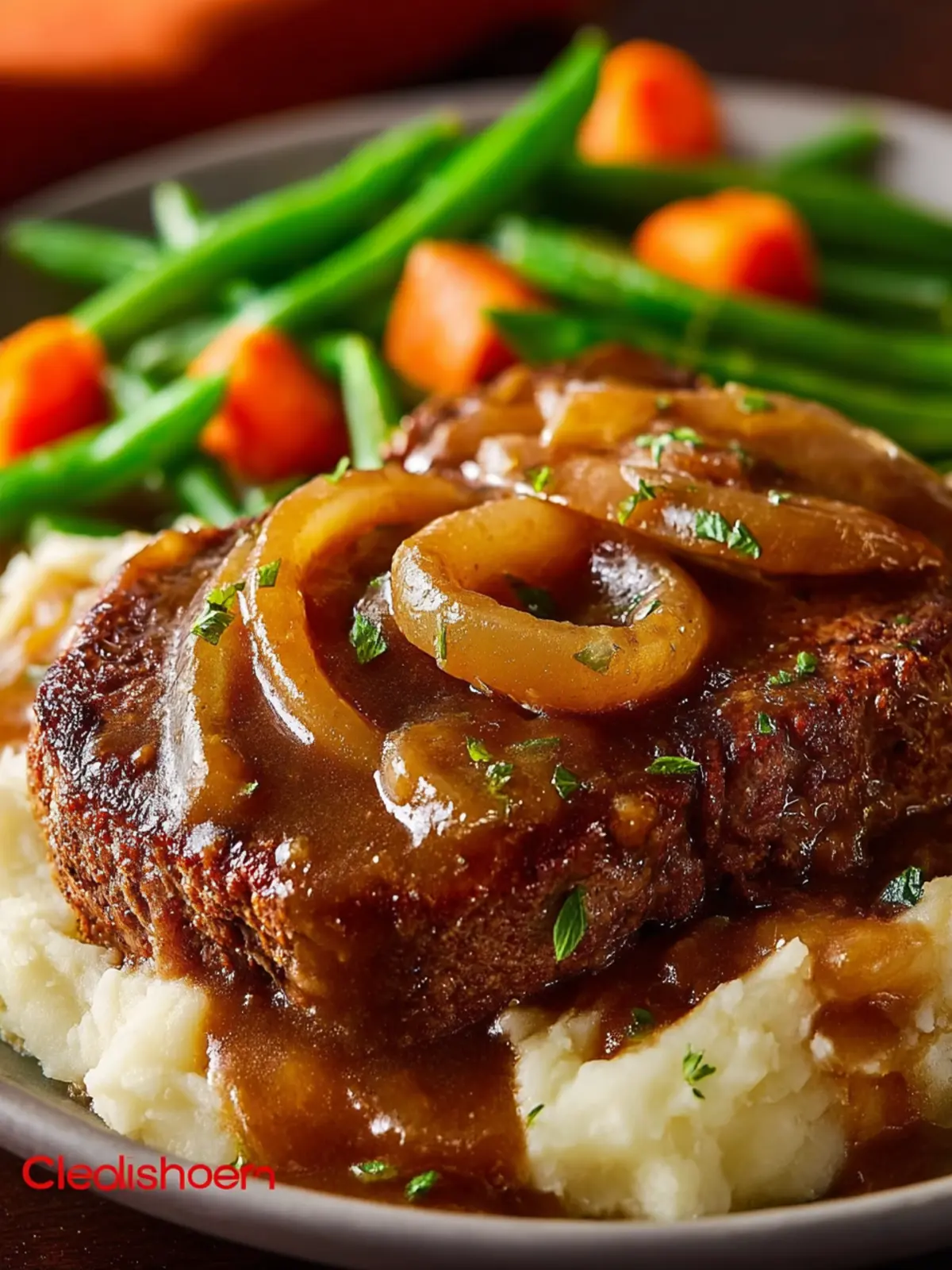 - Pour the gravy mixture over the steaks and onions.