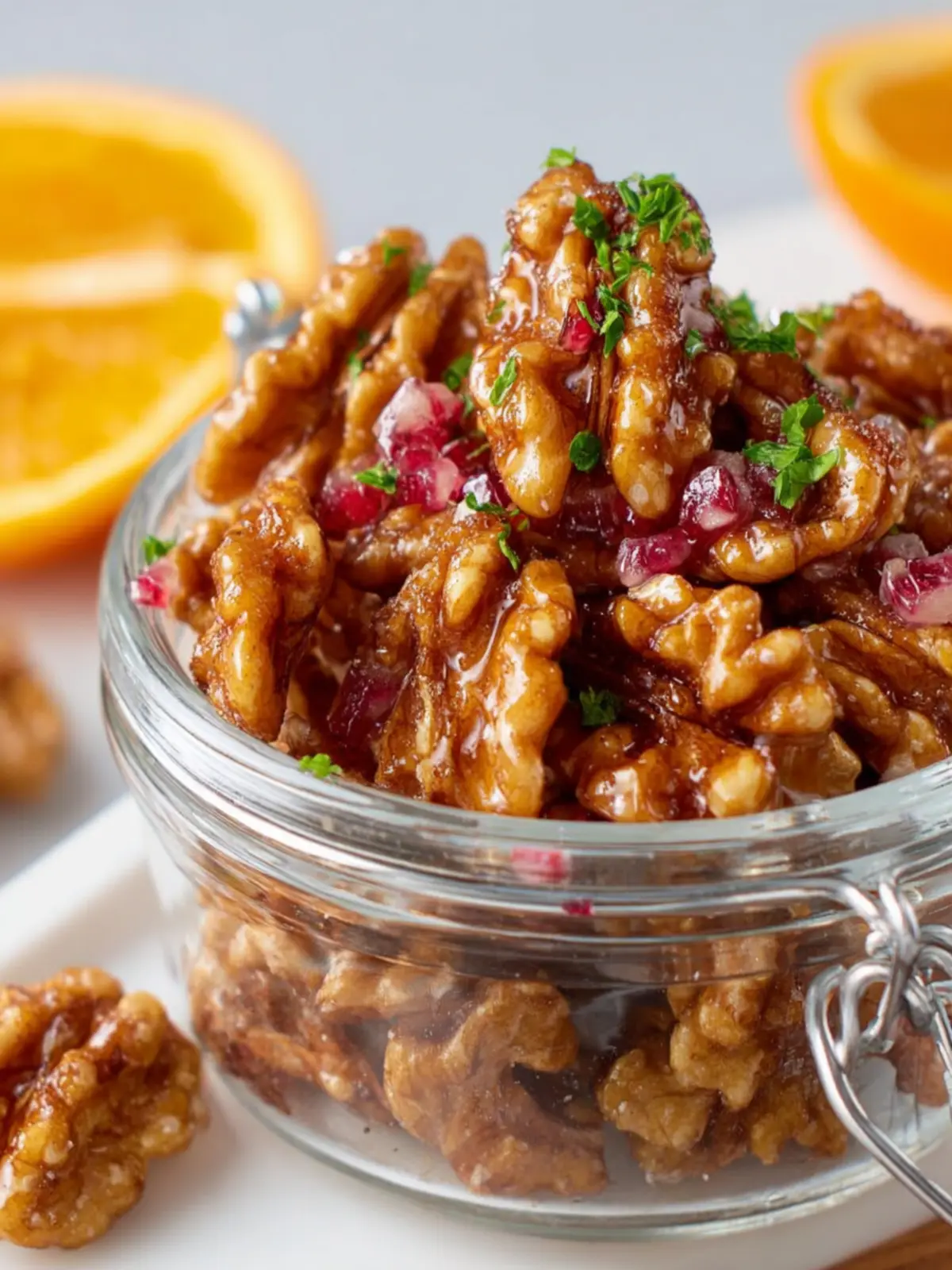 Deliciously candied walnuts perfect for snacking or as a topping.