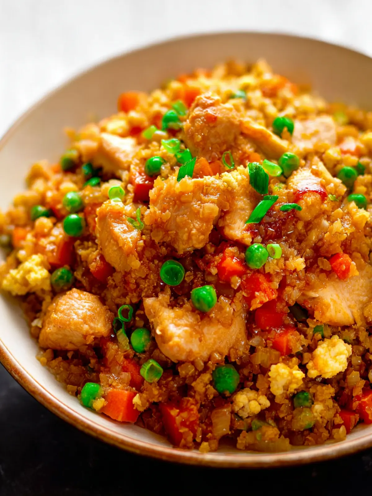 One of the standout features of this Cauliflower Chicken Fried Rice is its versatility. You can easily customize it to suit your dietary preferences or what you have on hand. Add your favorite veggies or even swap chicken for tofu or shrimp if you fancy a different protein. Plus, the cauliflower rice absorbs all the savory flavors, making each bite a delightful experience.