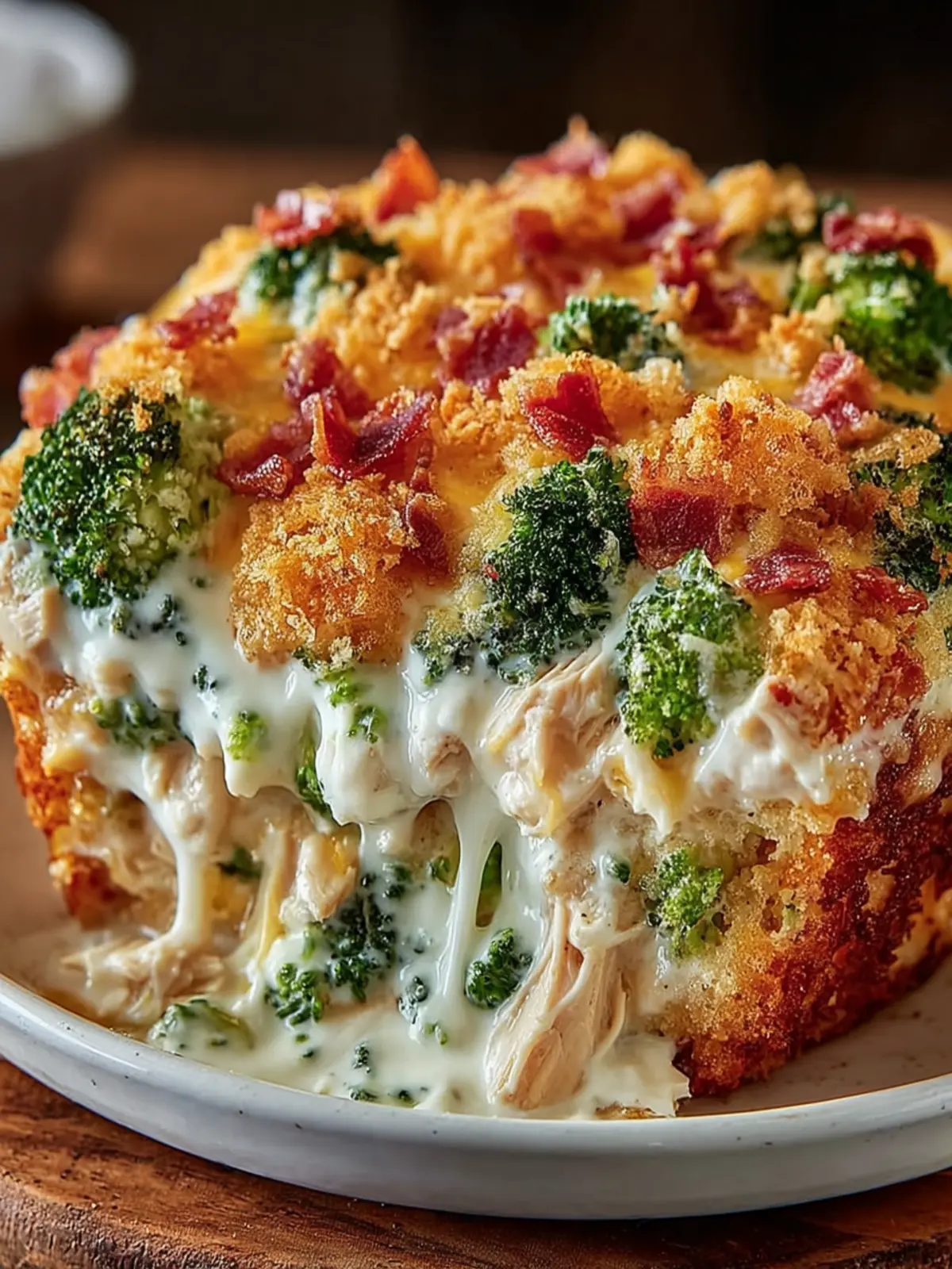 This cheesy broccoli chicken casserole is a comforting dish packed with flavor.
