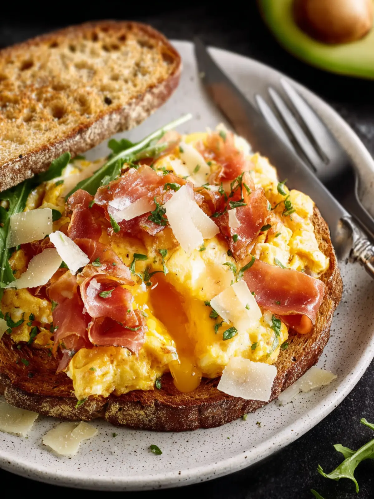 Cheesy Eggs Prosciutto: Indulgent Breakfast Bliss Awaits