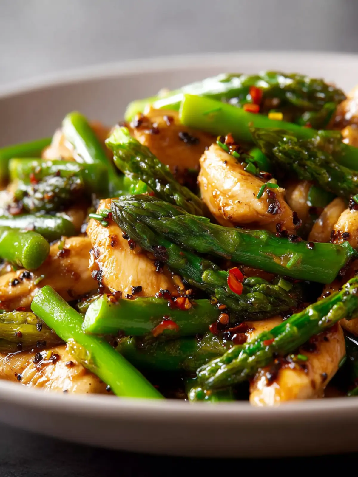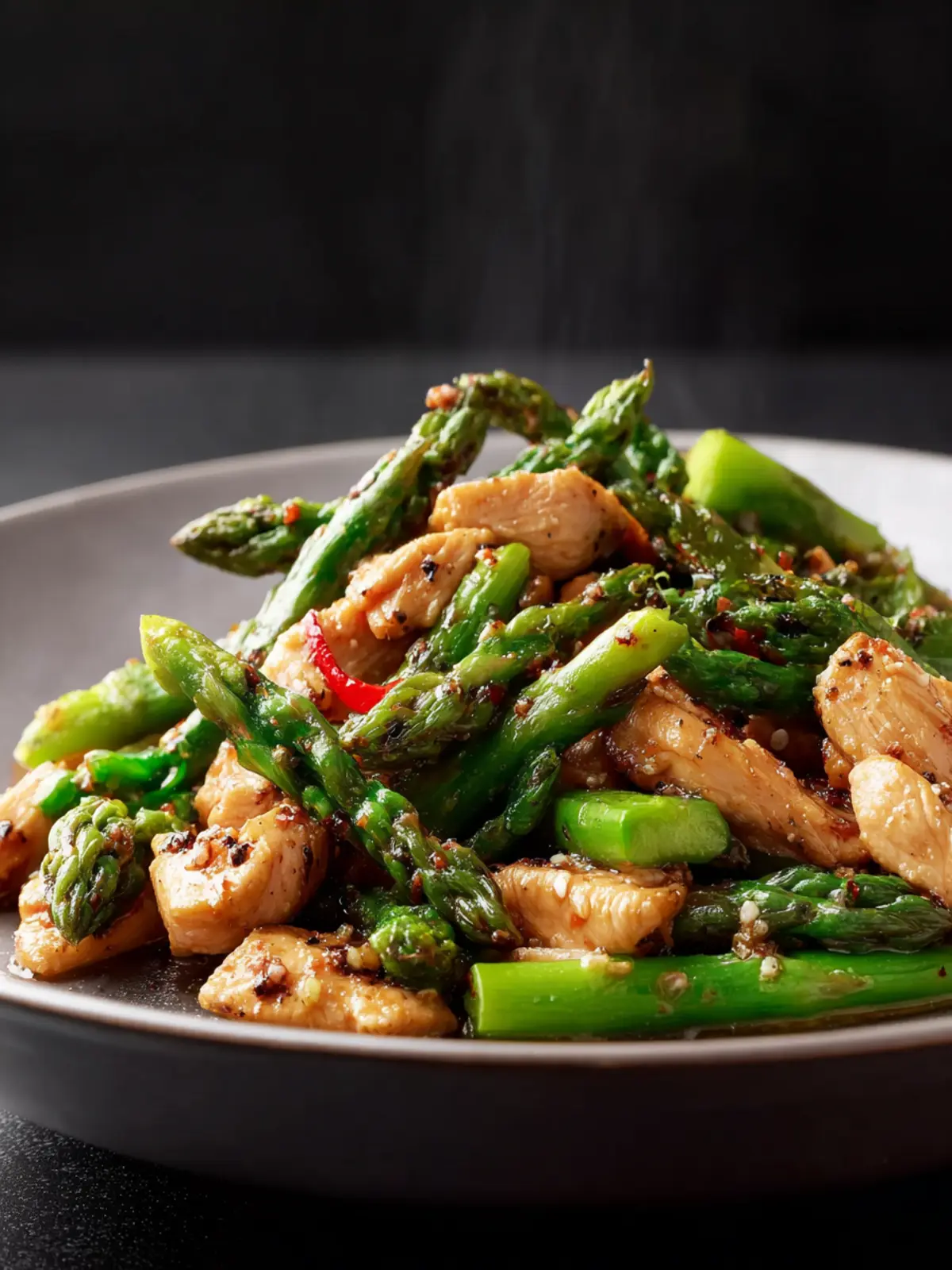 - Serve immediately while hot, enjoying the contrast of tender chicken and crisp asparagus with fragrant garlic and savory soy sauce.
