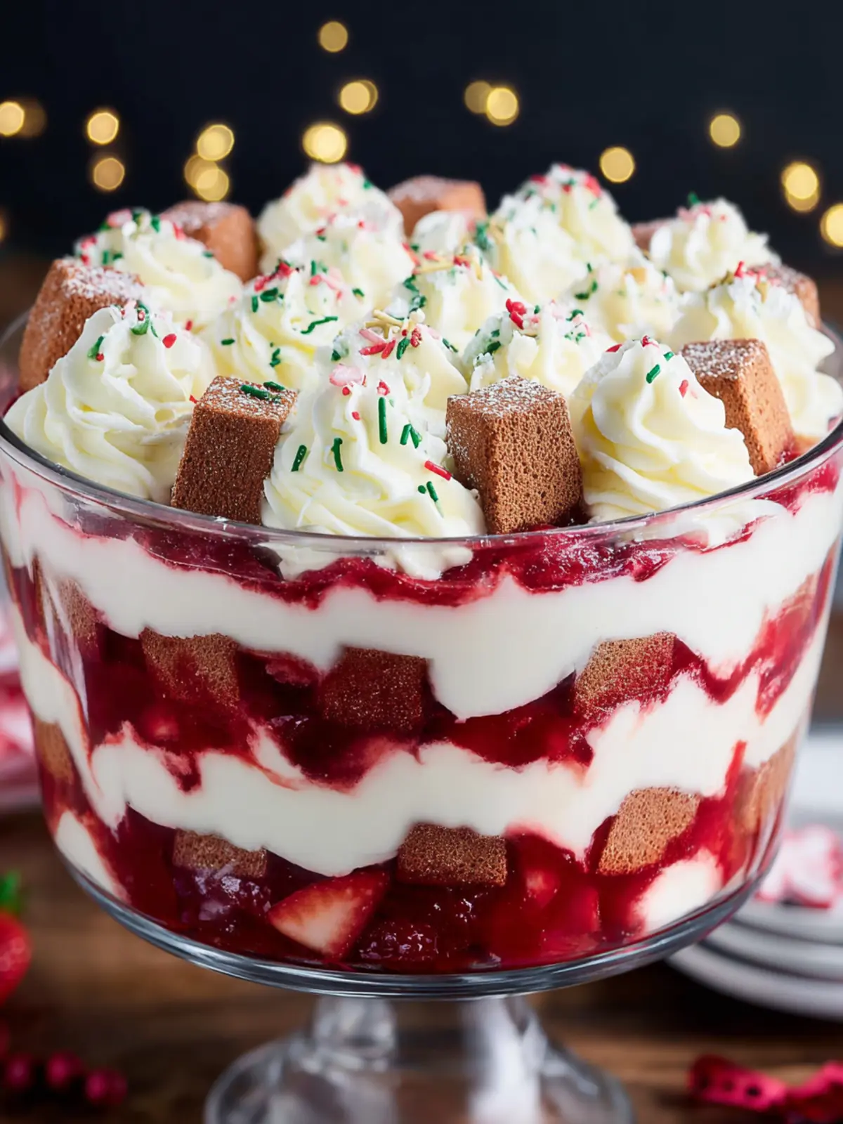 Embrace the holiday spirit with this festive Christmas trifle, and let it become a cherished part of your Christmas traditions. Your friends and family will adore it!