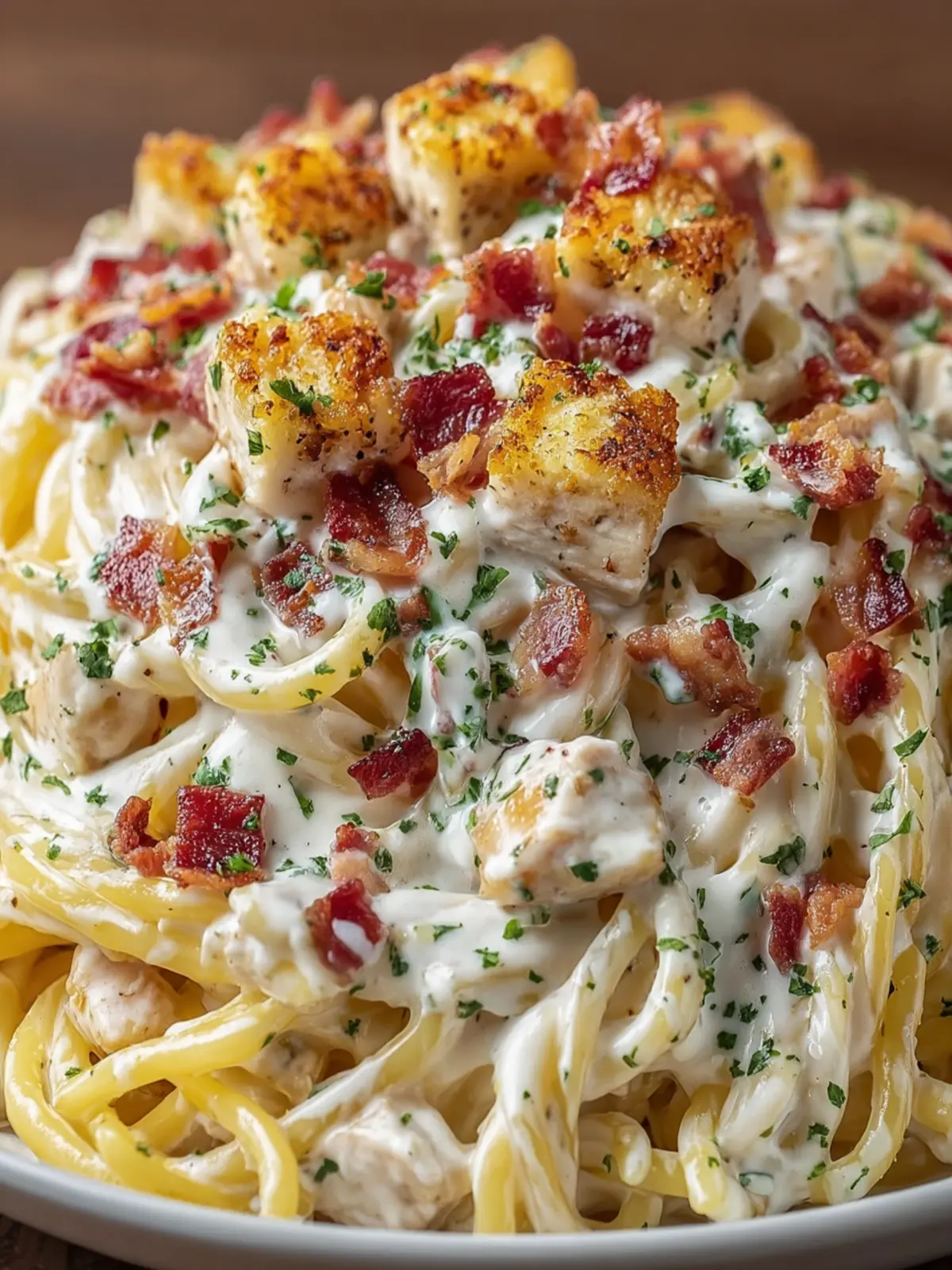 Versatile and Customizable: Not only does this creamy chicken bacon pasta dish stand on its own, but you can also tweak it to include your favorite vegetables or swap chicken for shrimp or even a meat substitute.