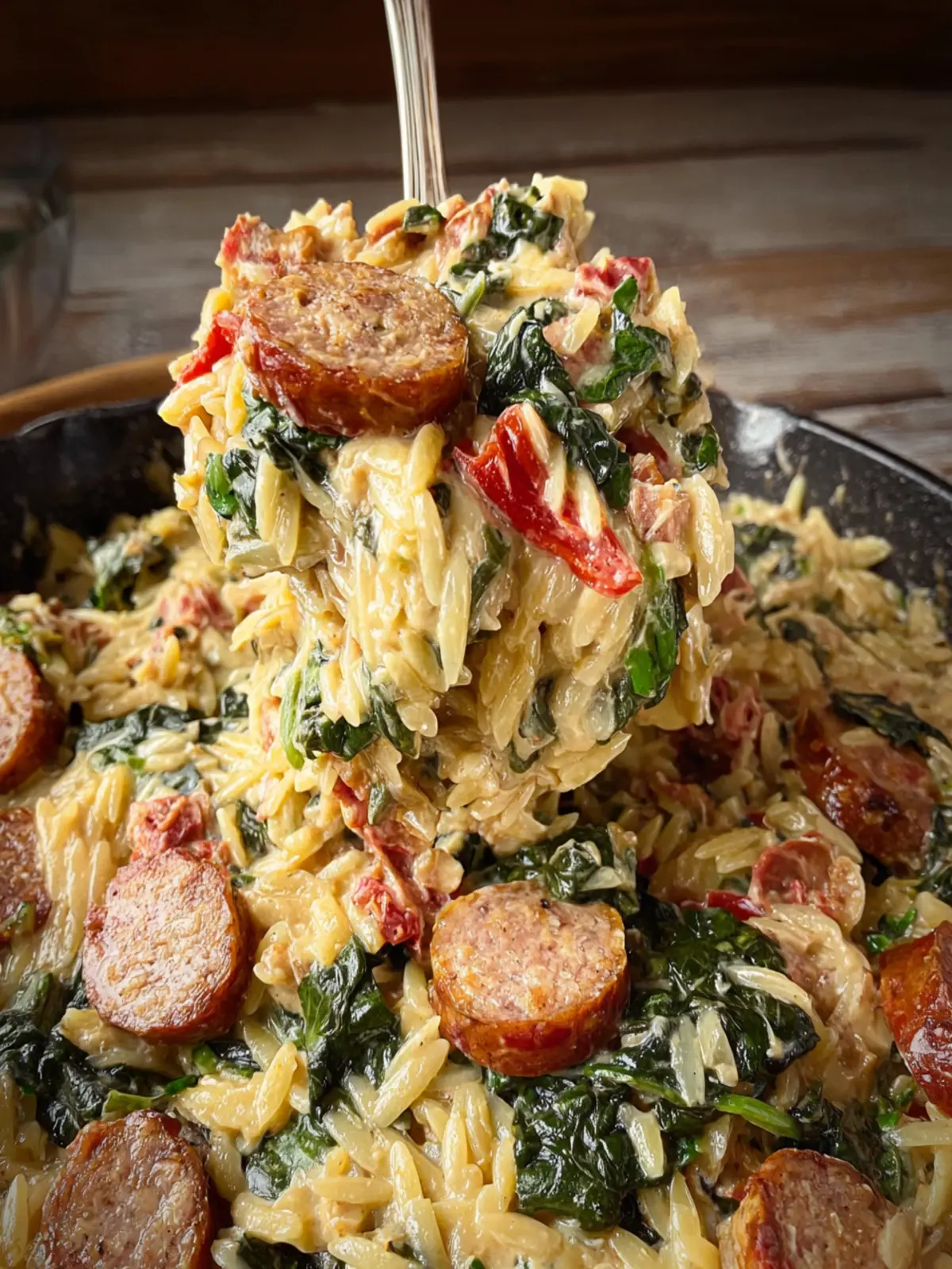 With these key ingredients, your creamy spinach artichoke sausage orzo bake will be a hit at any dinner table!