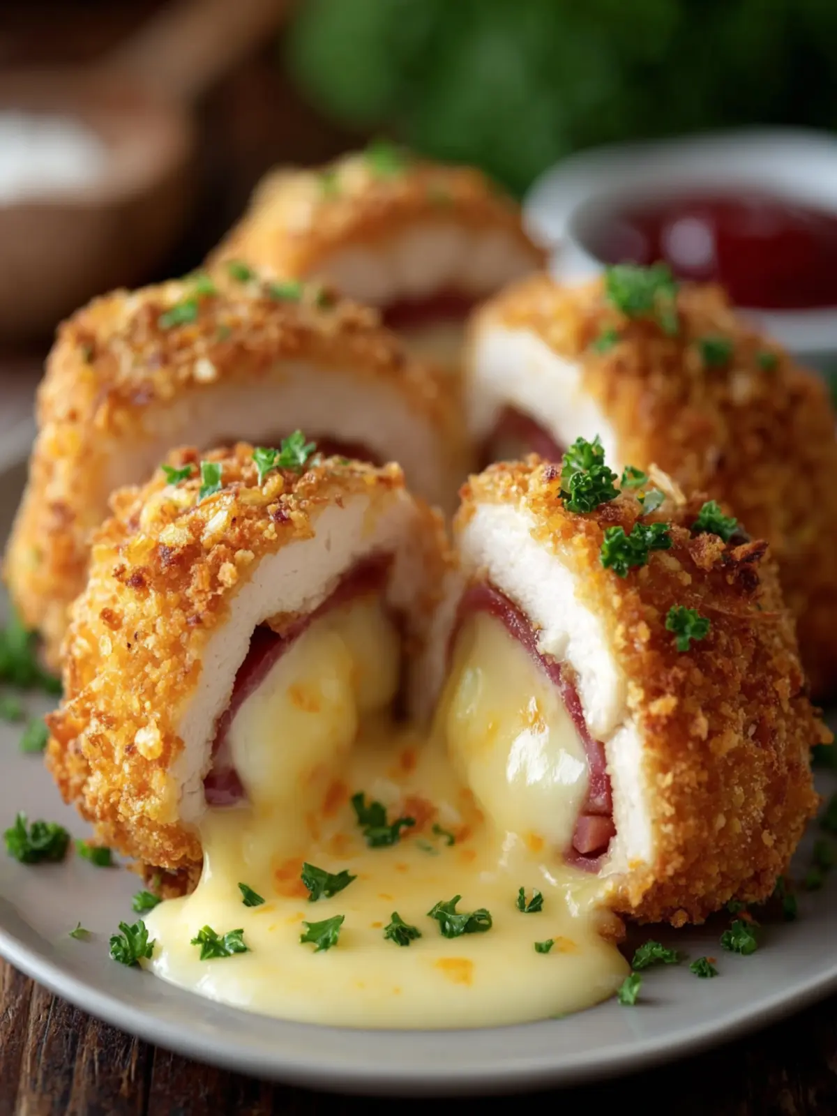 When you dive into this mouthwatering delight, you’ll discover layers of flavor and texture. The juicy chicken breast is lovingly embraced by slices of fresh ham and gooey Swiss cheese, all enveloped in a crunchy, golden-brown panko crust. This is not merely food; it’s a celebration on your plate! And the best part? It’s surprisingly easy to prepare, making it perfect not just for special occasions but also for a cozy weeknight dinner.