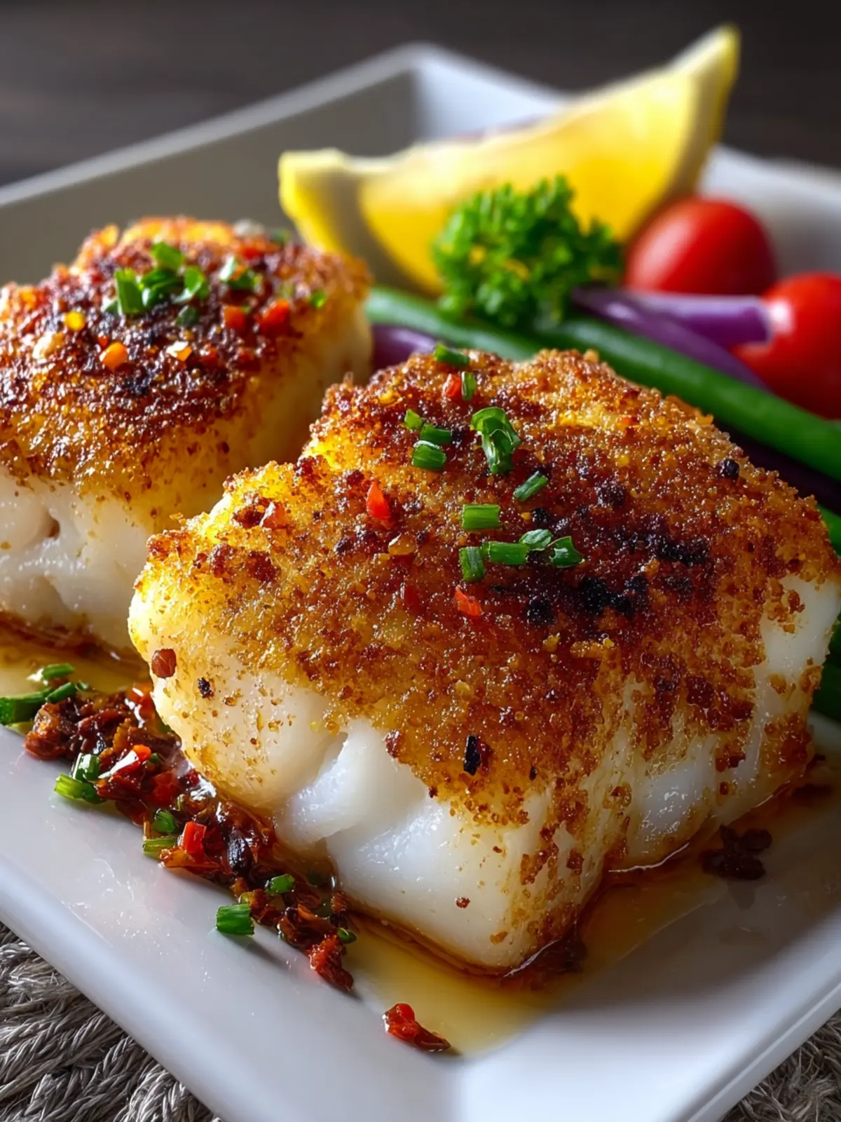 - Lemon Garlic: A classic combination that brightens the cod’s flavor. Simply mix minced garlic with lemon juice and zest before coating the fish.