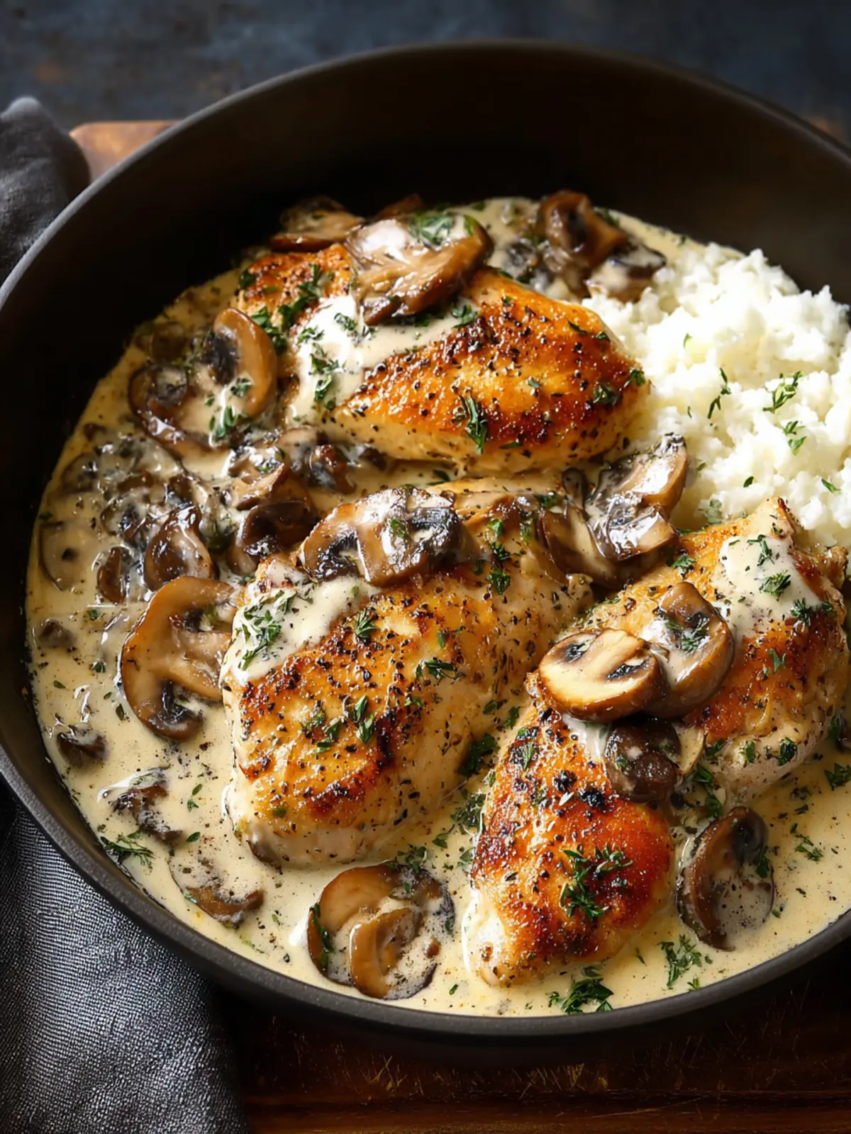 This dish brings together tender chicken and a rich, creamy sauce that wraps each bite in warmth. The umami-packed mushrooms add a depth of flavor that complements the chicken perfectly. It’s like a cozy hug on a plate, making it ideal for weeknight dinners or special occasions alike.