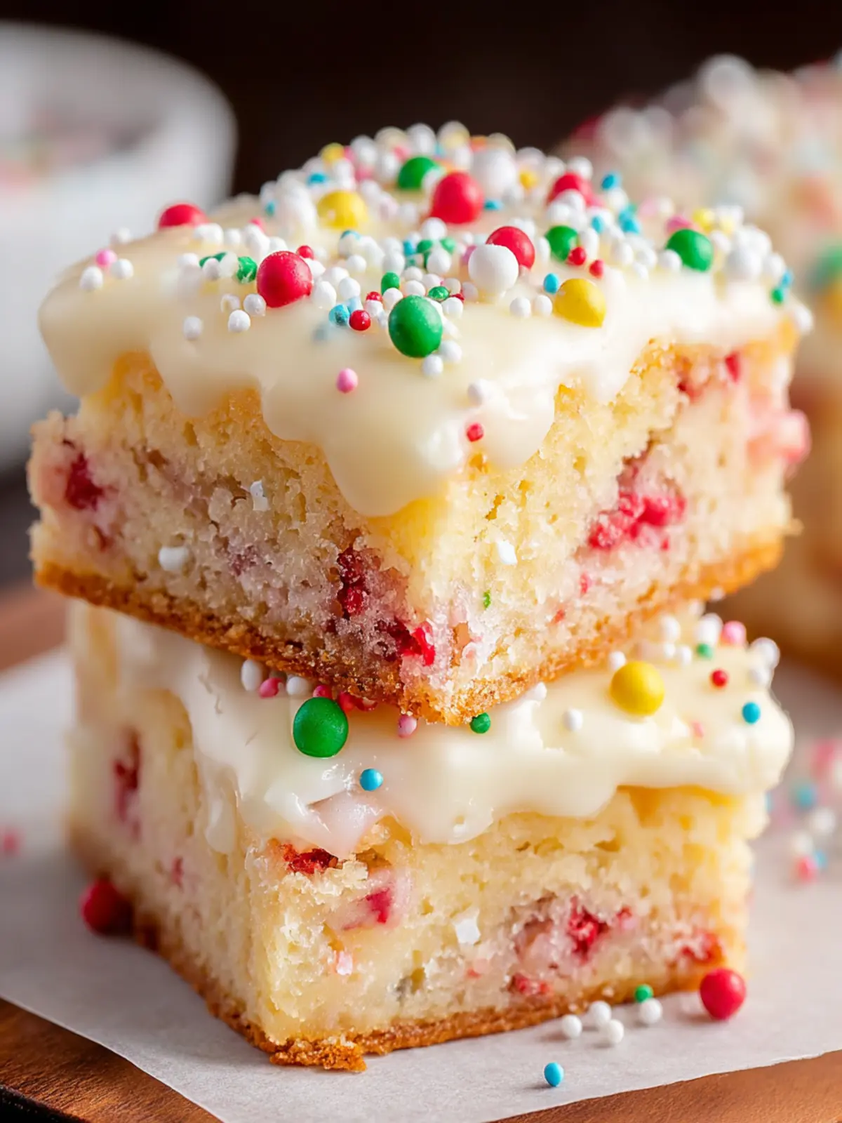 Definitely! While festive jimmies or nonpareils are traditional for these blondies, feel free to get creative. You can mix in festive seasonal colors or even swap in chocolate chips or nuts for a unique twist. The key is to have fun with the decorations, matching them to your holiday spirit!