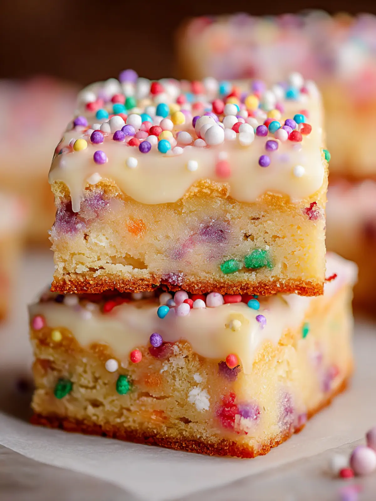 Delicious soft butter squares with festive sprinkles, perfect for any celebration.