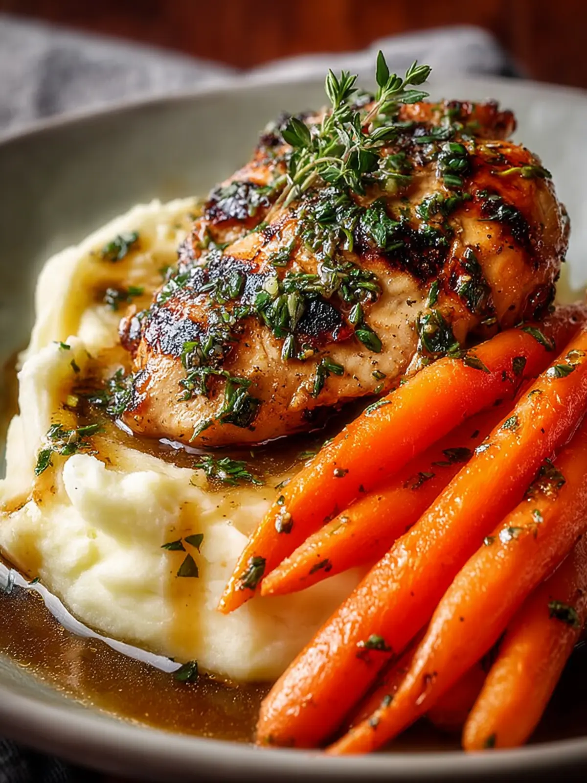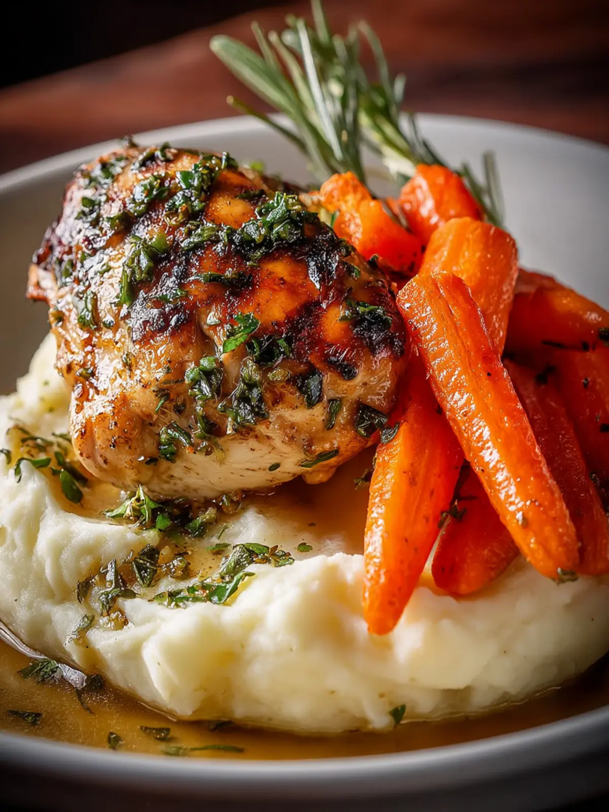 Bringing garlic herb chicken with mashed potatoes and glazed carrots to your table is more than just serving dinner; it’s about creating a moment of comfort and joy. This dish beautifully combines the savory richness of garlic-herb chicken, the creamy texture of mashed potatoes, and the sweet crunch of glazed carrots. Whether you’re hosting a dinner party or enjoying a cozy night in, this recipe is sure to impress. As you savor each bite, you might just find yourself daydreaming of future family gatherings or intimate dinners—after all, good food has a way of bringing people together. Enjoy!