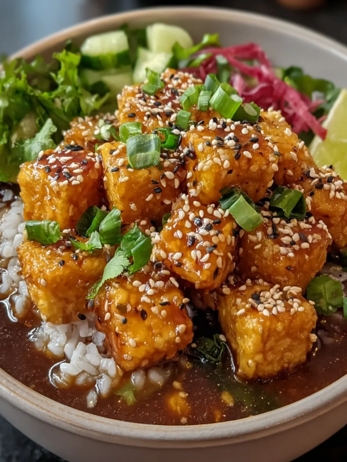 The marriage of ginger and miso creates a savory base that’s both rejuvenating and comforting. Ginger warms you from the inside out, contributing to that cozy feeling, while the umami-rich miso lends a deep, earthy flavor profile that makes this soup irresistible. Topped with crispy shredded sesame tofu, you get an amazing textural contrast that perfectly complements the broth. Trust me, it’s a dish that transforms what could be another mundane evening into a delightful dining experience.