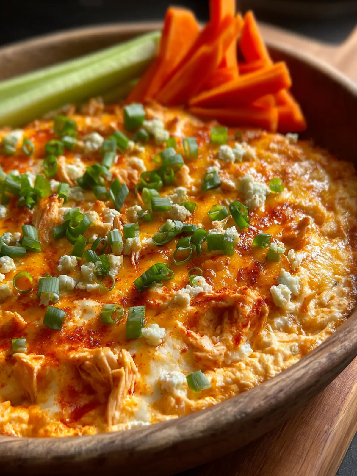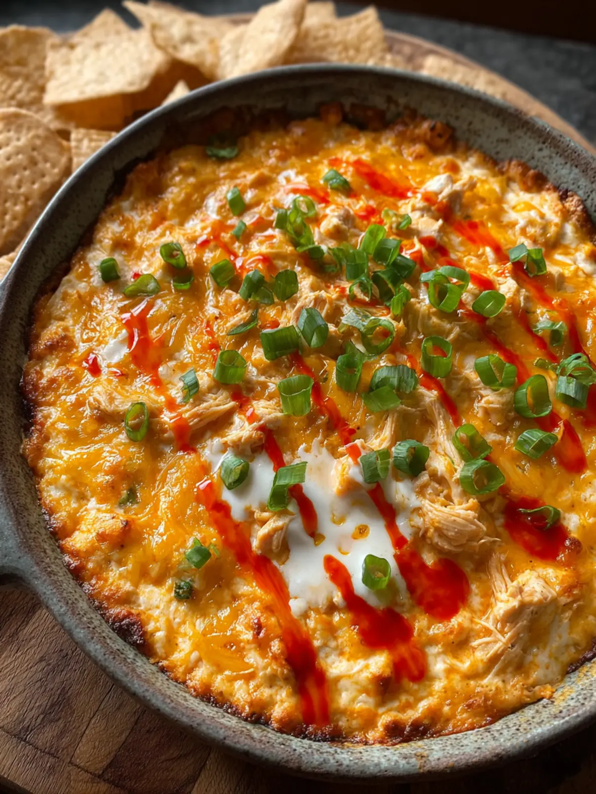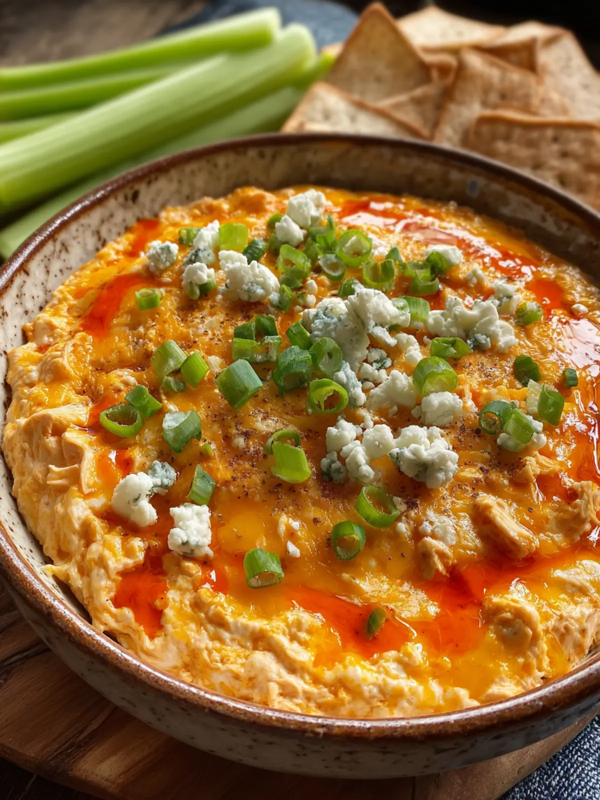 A delicious and creamy buffalo chicken dip that’s perfect for parties and gatherings.