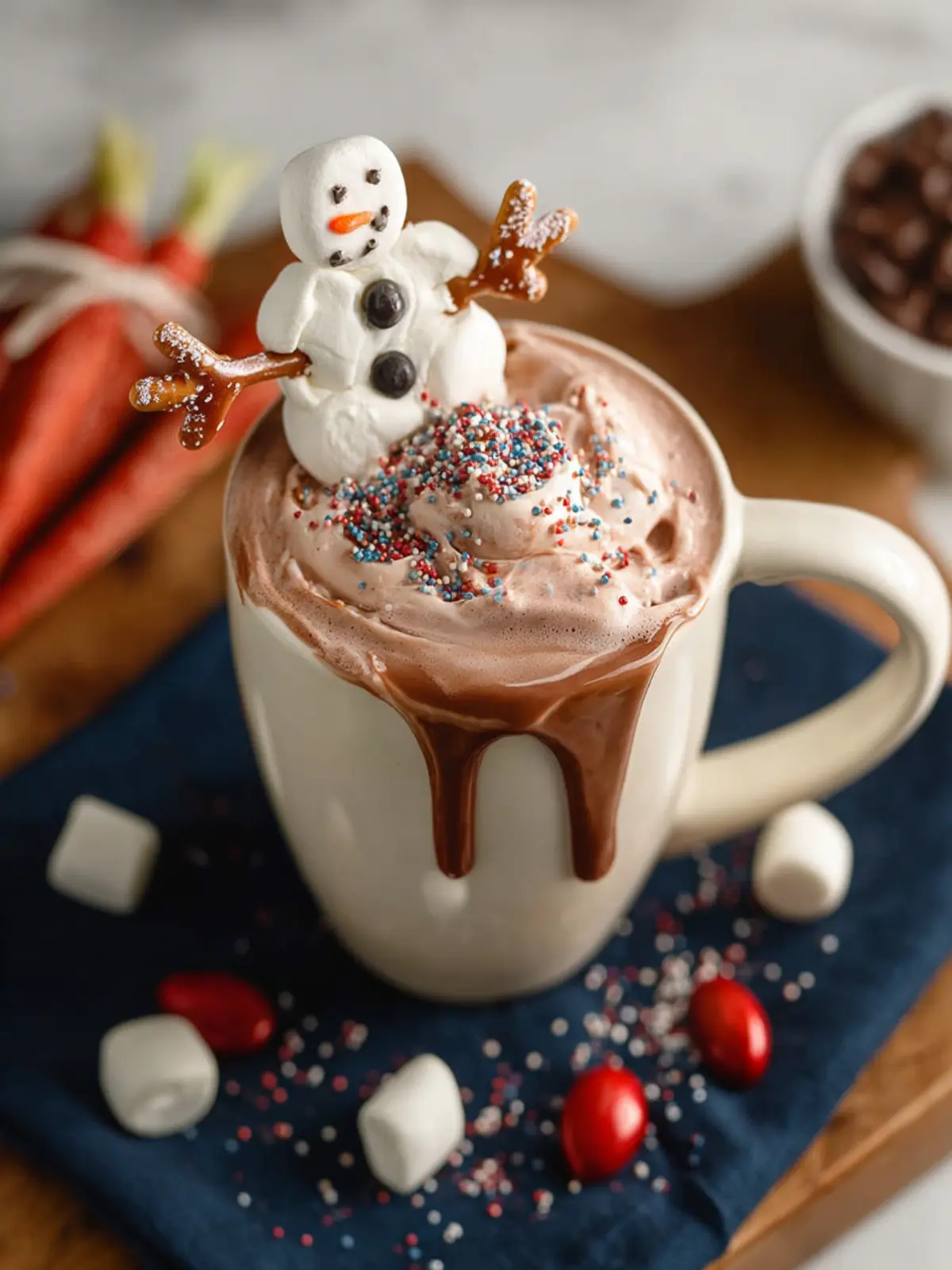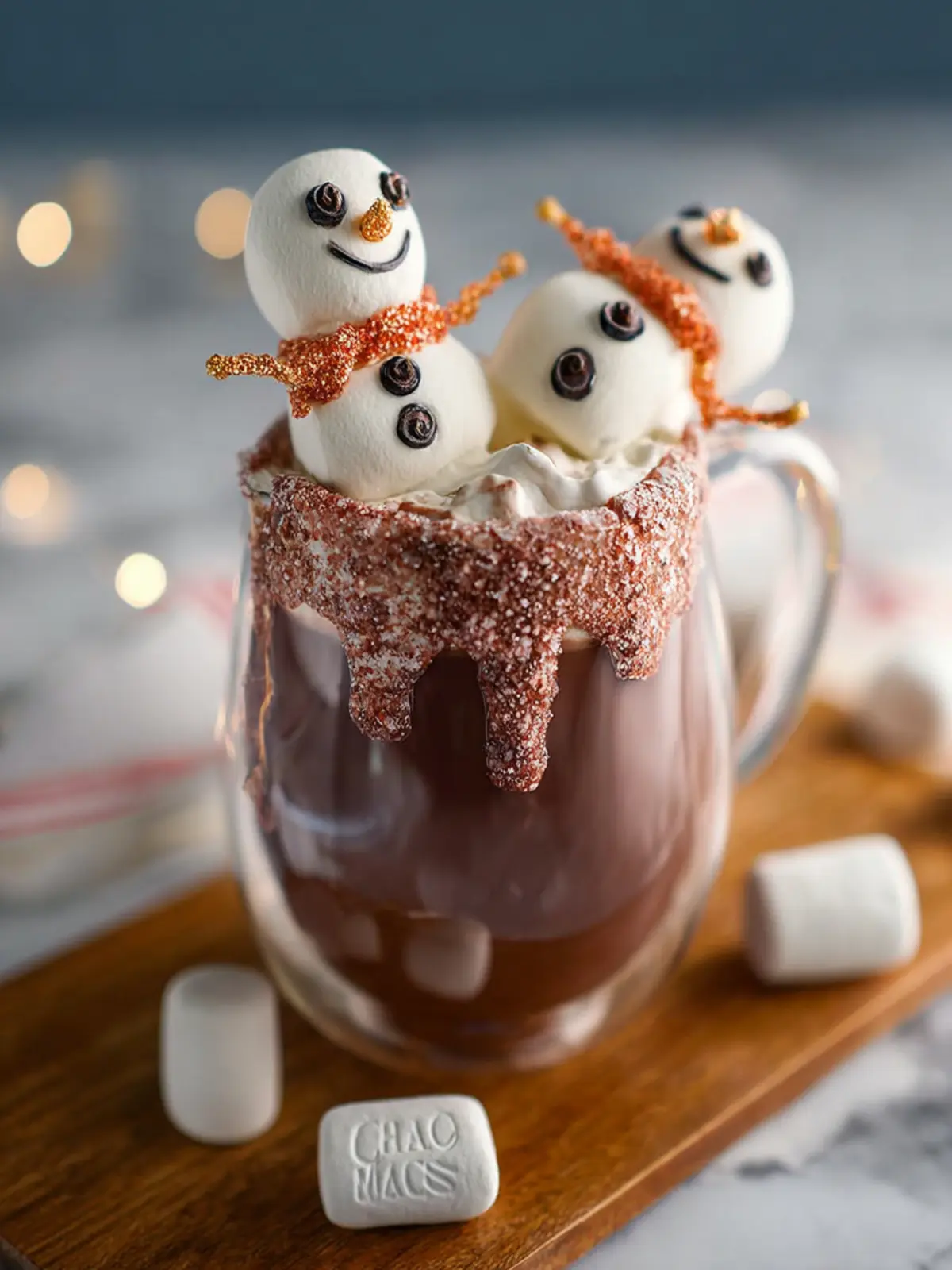 - Perch your snowman on a delicious cup of hot chocolate!