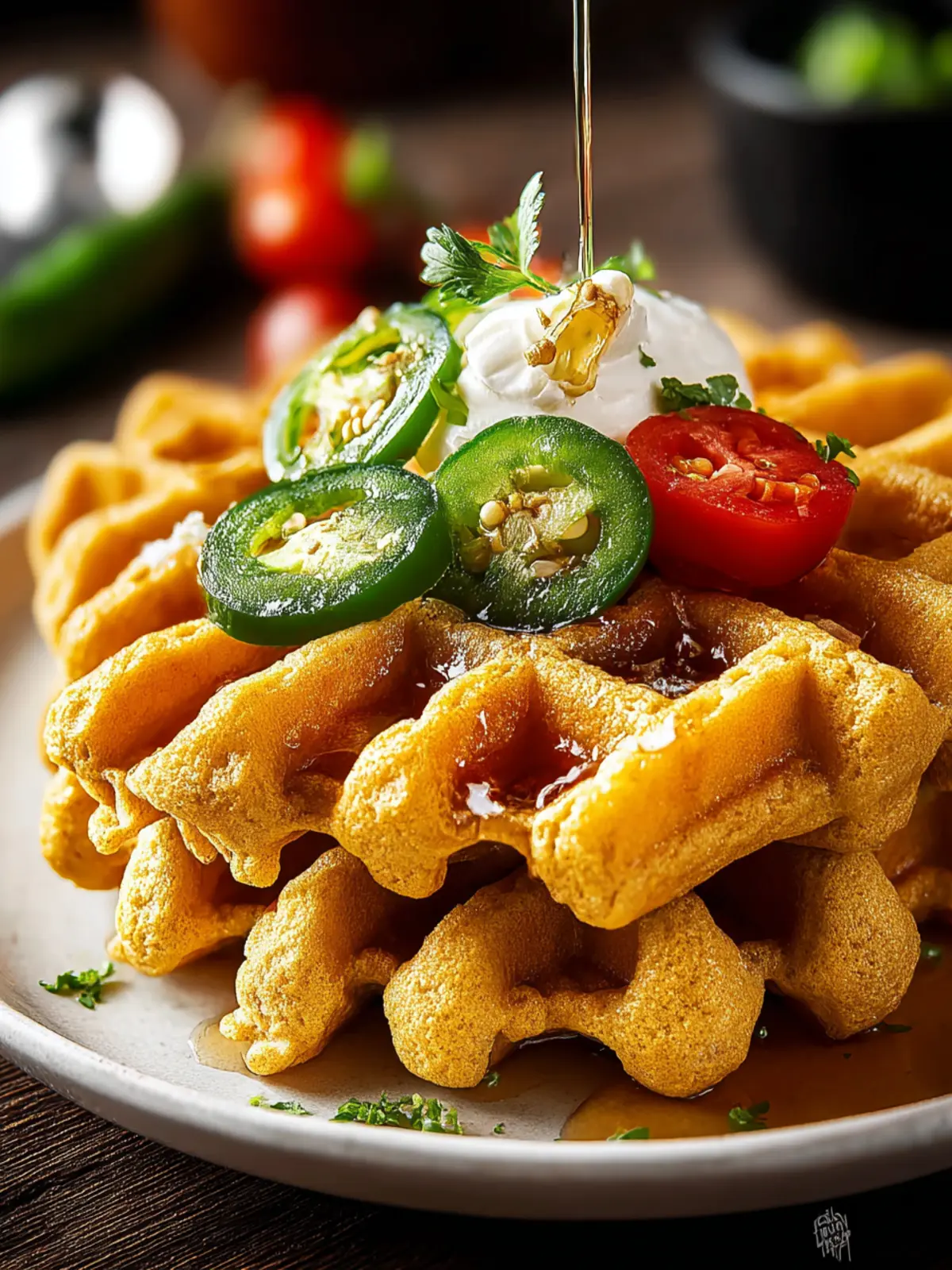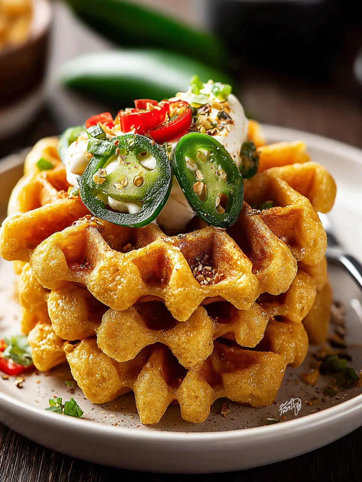 - Cheesy Goodness: Melt some cheddar or pepper jack cheese on top right after they come off the waffle iron. The gooeyness complements the jalapeño heat beautifully.