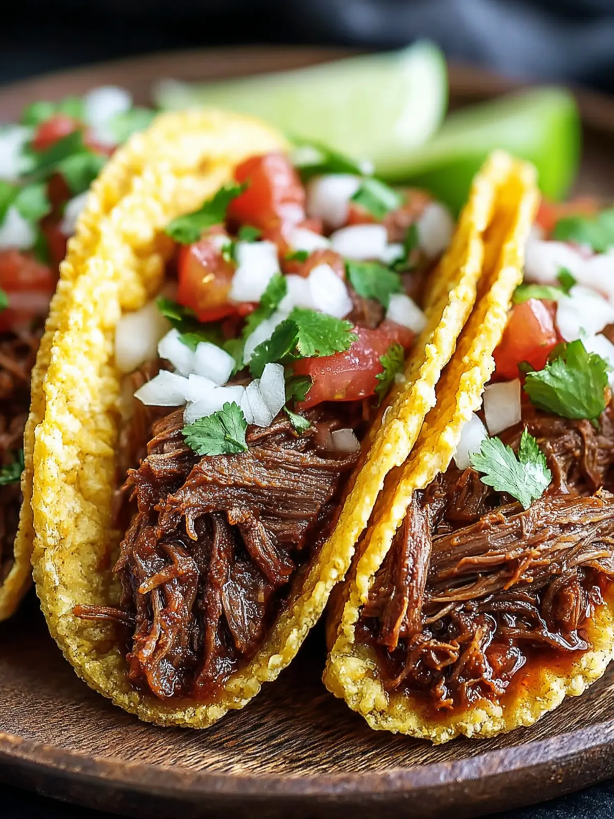 Finish your tacos with fresh toppings like diced onions, cilantro, avocado, and a squeeze of lime. These not only add color but also a burst of freshness that balances the richness of the beef. Enjoy your culinary adventure!