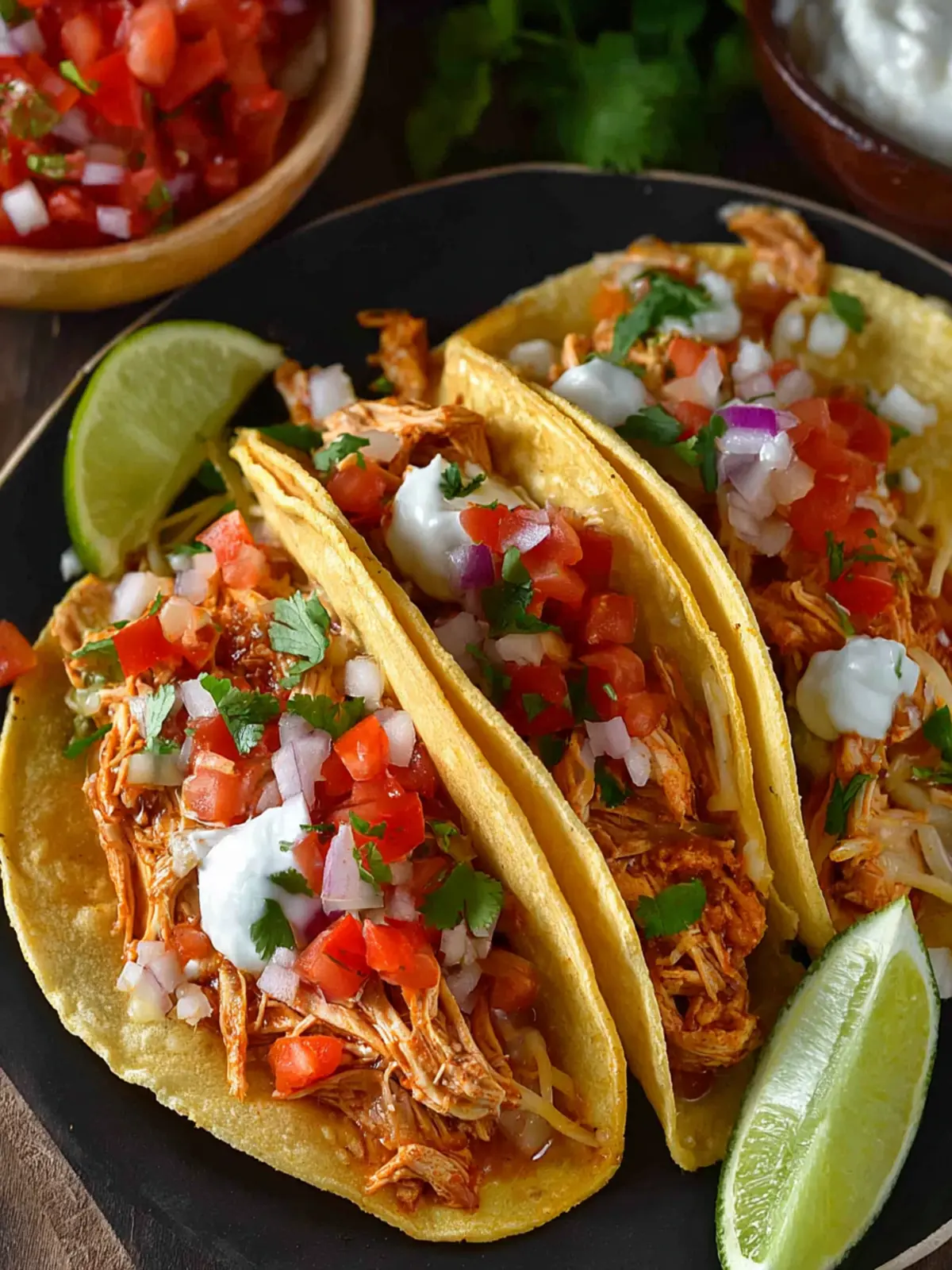 Unforgettable Flavor: The beauty of these tacos lies in their simplicity. The magic starts with chicken simmering in zesty salsa, which melds together vibrant flavors until it’s perfectly shredded and ready to be tucked into your favorite tortillas. Whether you opt for corn or flour, each bite bursts with deliciousness!