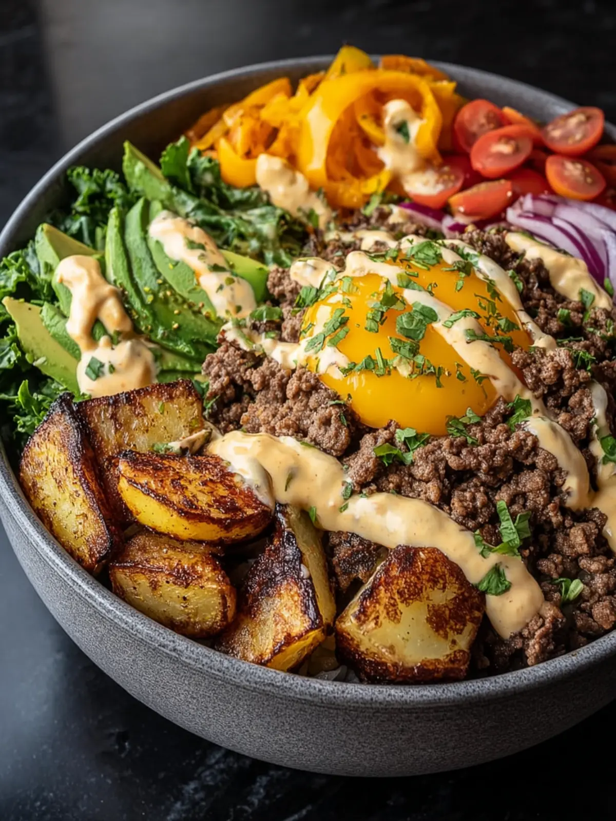 • Packed with Flavor: The combination of savory ground meat, crisp veggies, and a zesty sauce creates an explosion of taste in every bite. Plus, the bowls are customizable; you can add your favorite toppings!