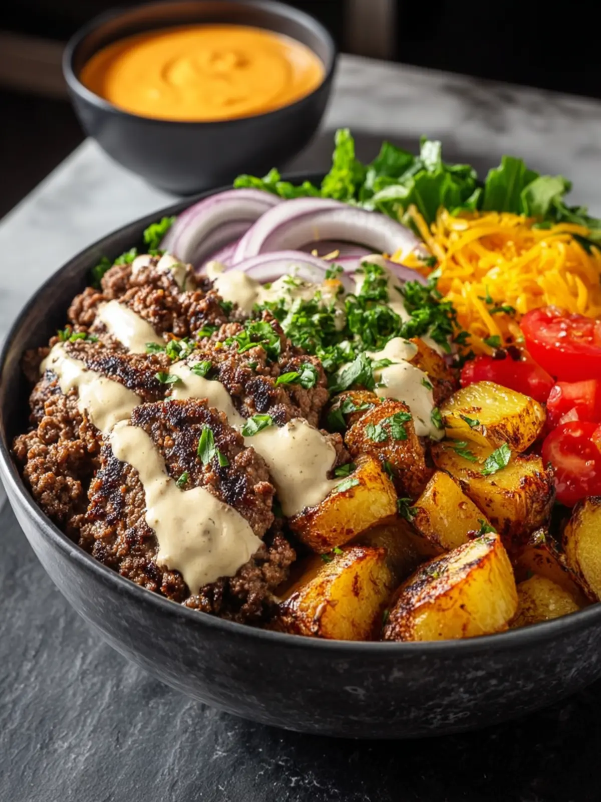 Condiments: Customize your bowl with favorite burger toppings! Ketchup, mustard, or a zingy sauce can take your smash burger bowl recipe to the next level, ensuring it suits your taste.