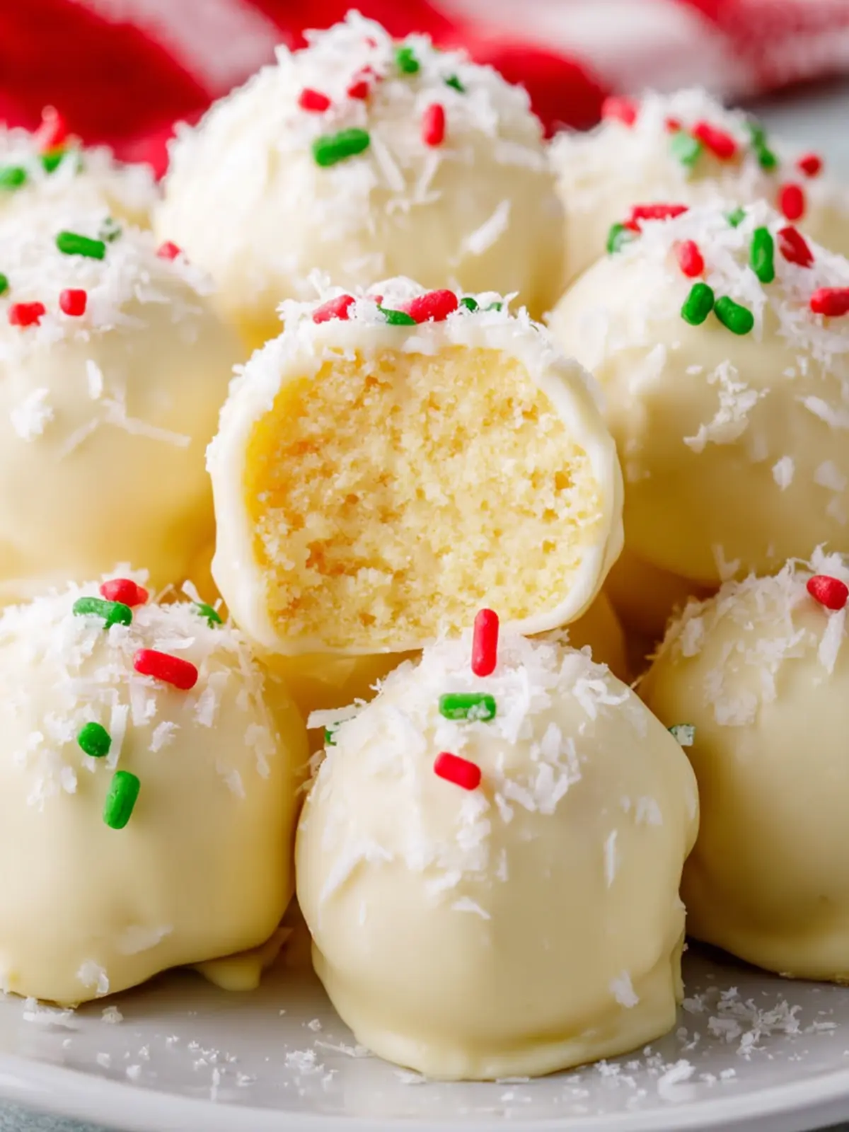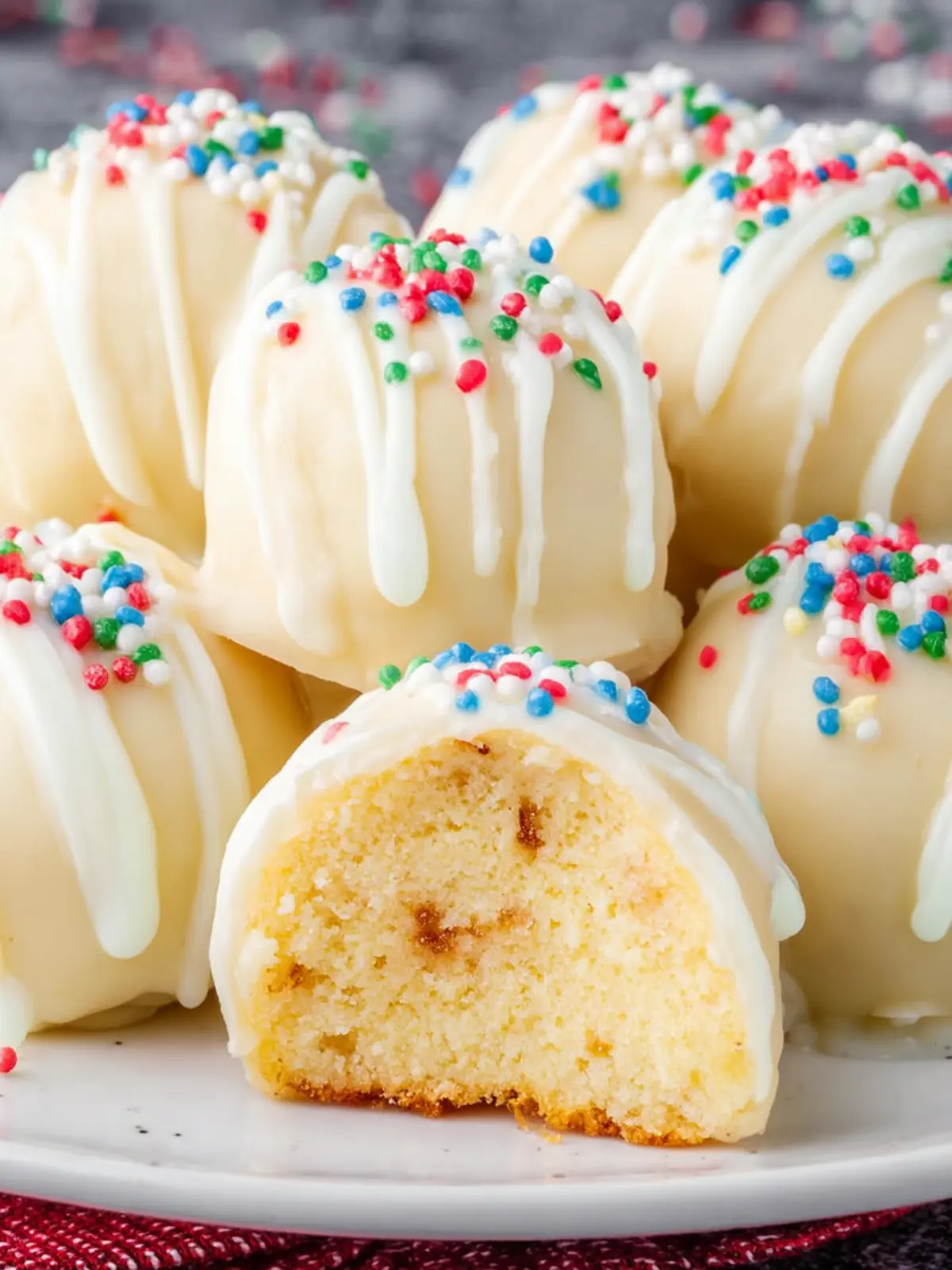 Delicious and easy sugar cookie truffles coated in white chocolate and sprinkles.